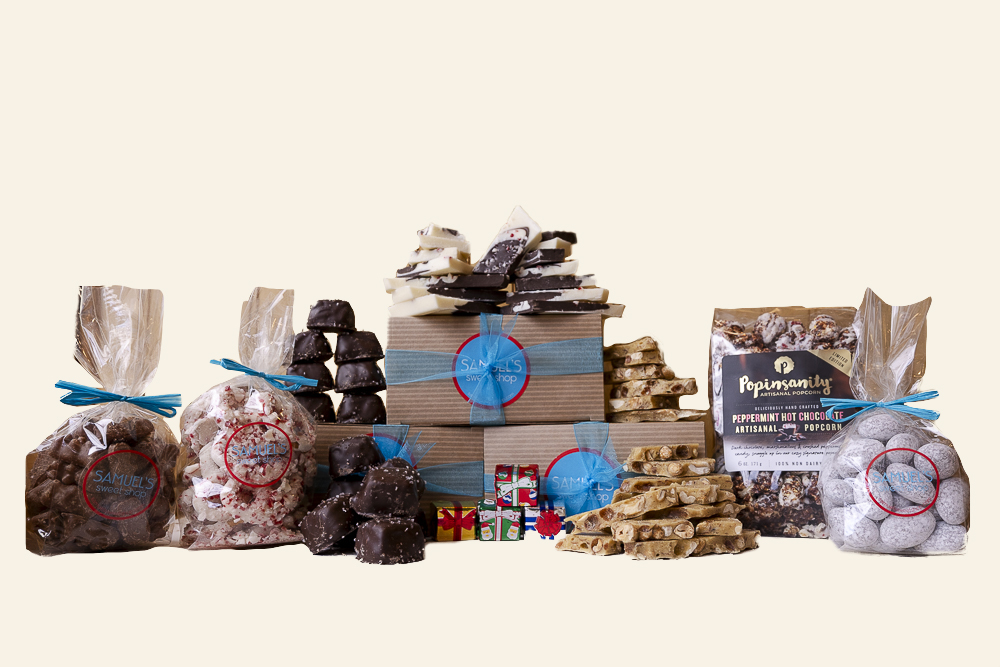 ‘Tis the season to be sweetened! This festive selection of year-round & holiday favorites will delight everyone on your nice list! Featuring our famous homemade peppermint bark, best-selling sea salt caramels & several BRAND NEW items – including peanut brittle!