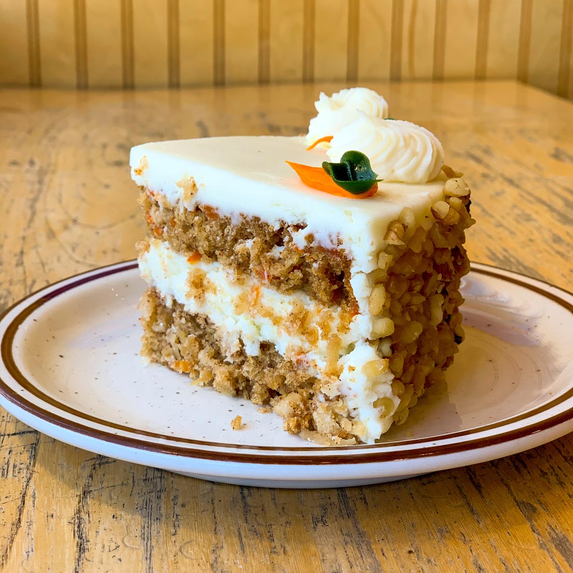 | Dessert | Carrot Cake, Cheese Cake, Cheese Cake with Strawberry Drizzle, Apple Pie, Apple Crumb, Blueberry Pie, Blueberry Crumb, Cherry Pie, Cherry Crumb, Lemon Meringue Pie |
