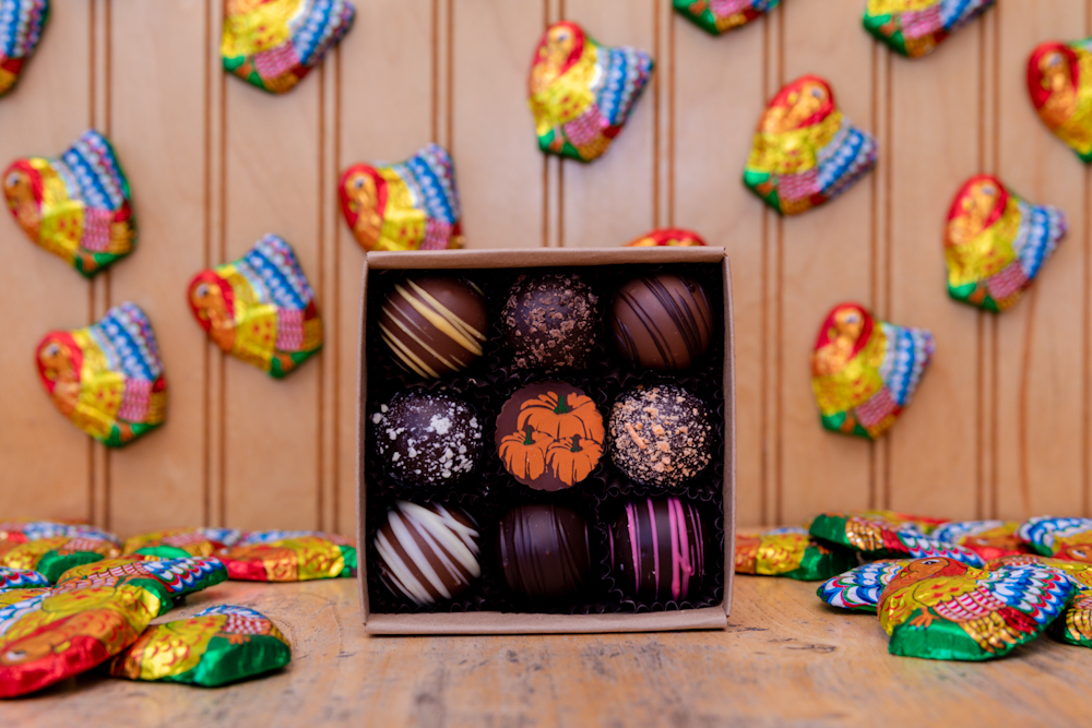Nine-piece truffle sampler, including our famous pumpkin pie truffle